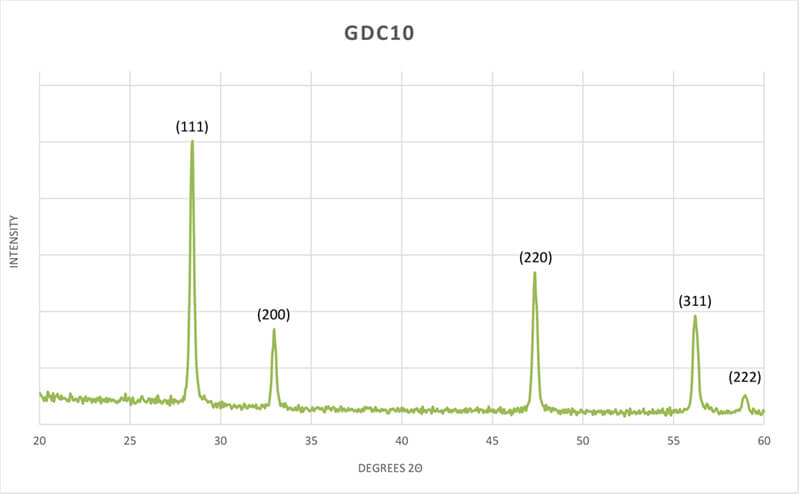 As with all Nexceris products, quality and reproducibility are built into our process technology and execution. As with all products in our Premium Powder line, the GDC10 Premium Powder is provided with comprehensive physical and performance characterization, including documentation of: